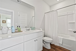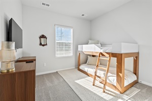 4 Bedrooms • 3 Bathrooms 3 Baths • Sleeps 1-8The spacious layout features a queen bedroom and full bathroom on the main floor — perfect for guests who prefer to avoid stairs. Upstairs, unwind in the king master suite with a private bath, plus two additional guest rooms (queen + twin bunks) and a third full bath. A cozy loft area with a desk makes remote work a breeze! 🧑💻