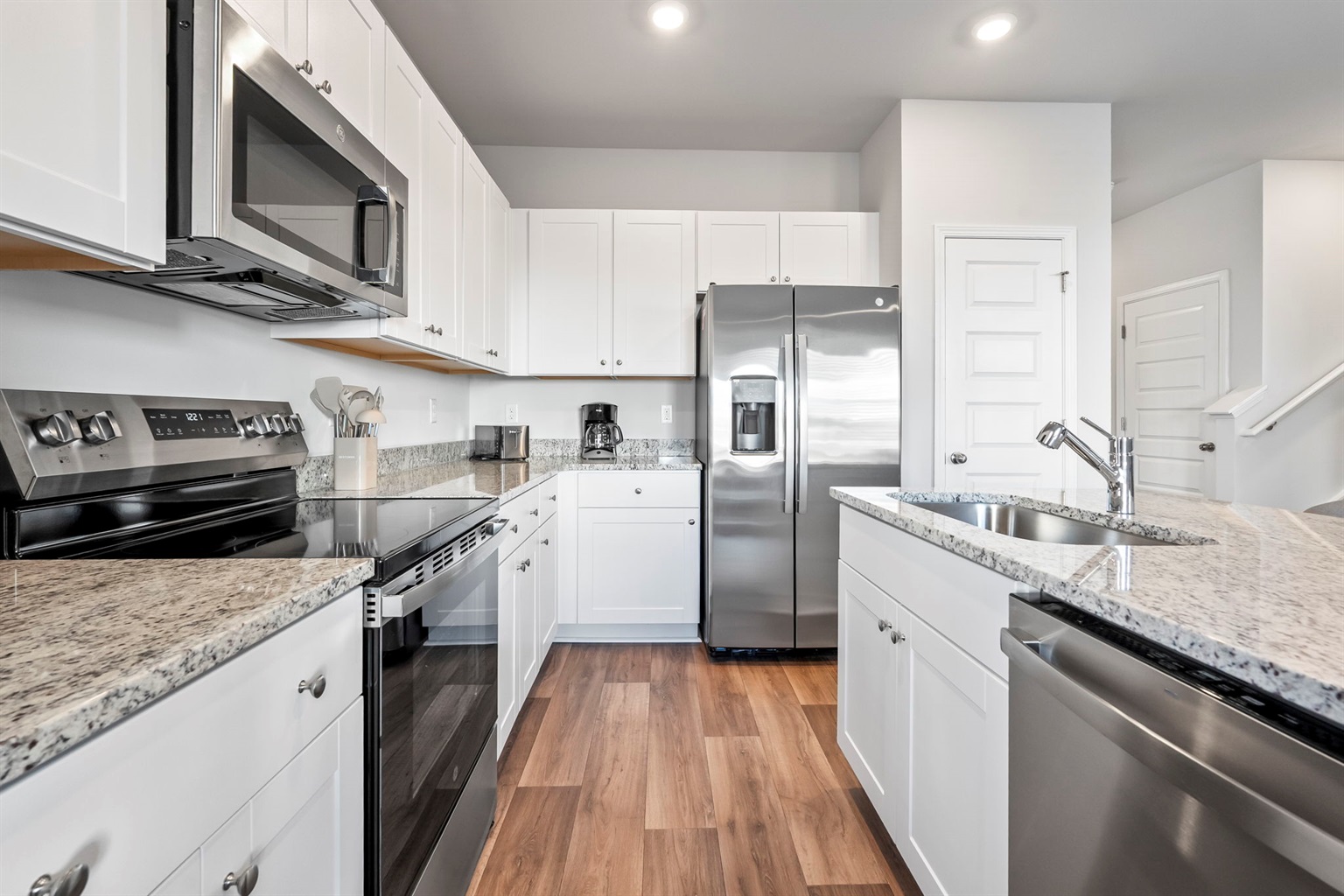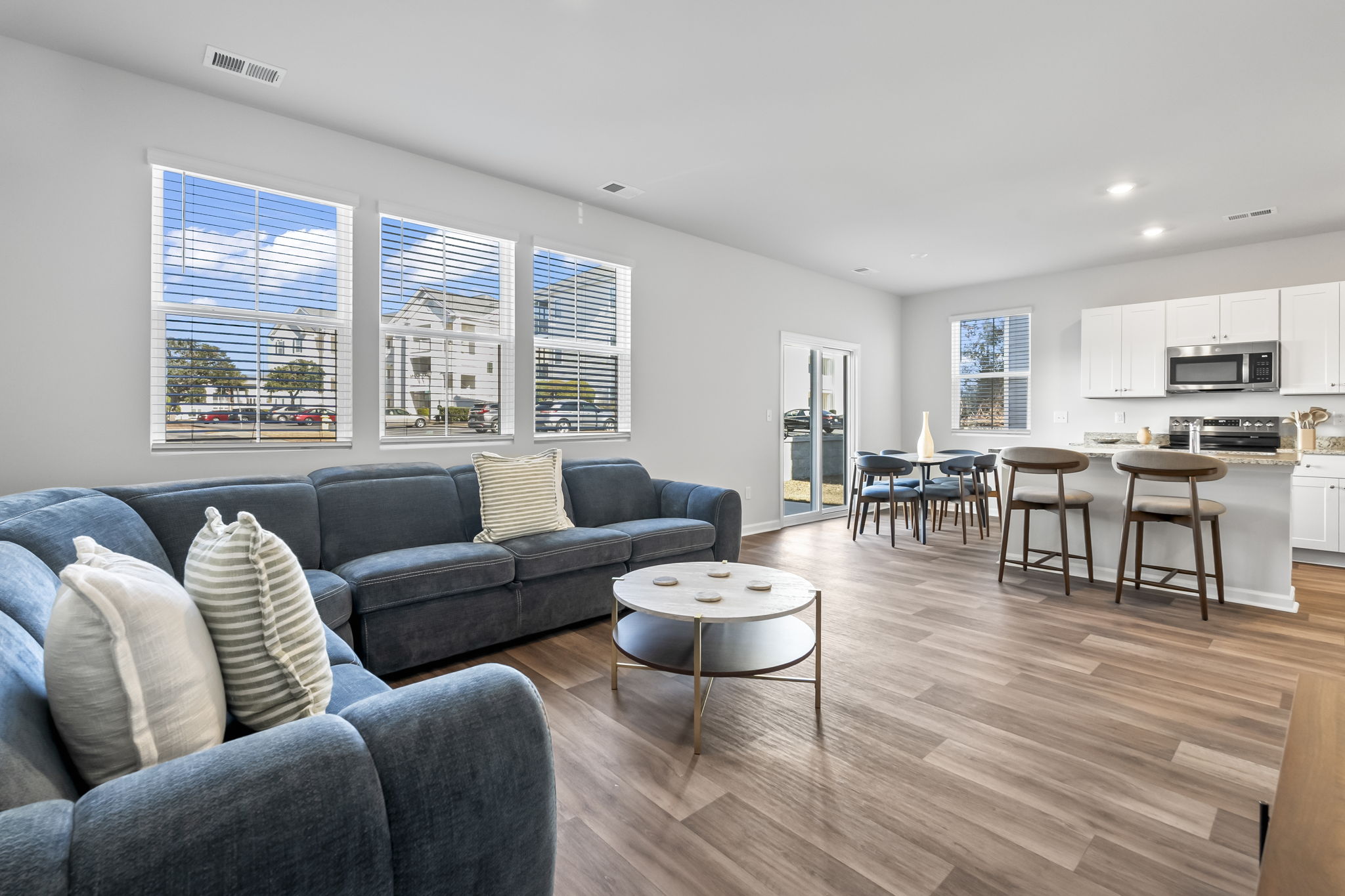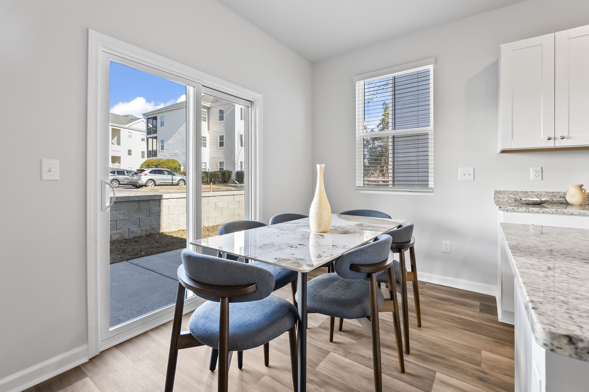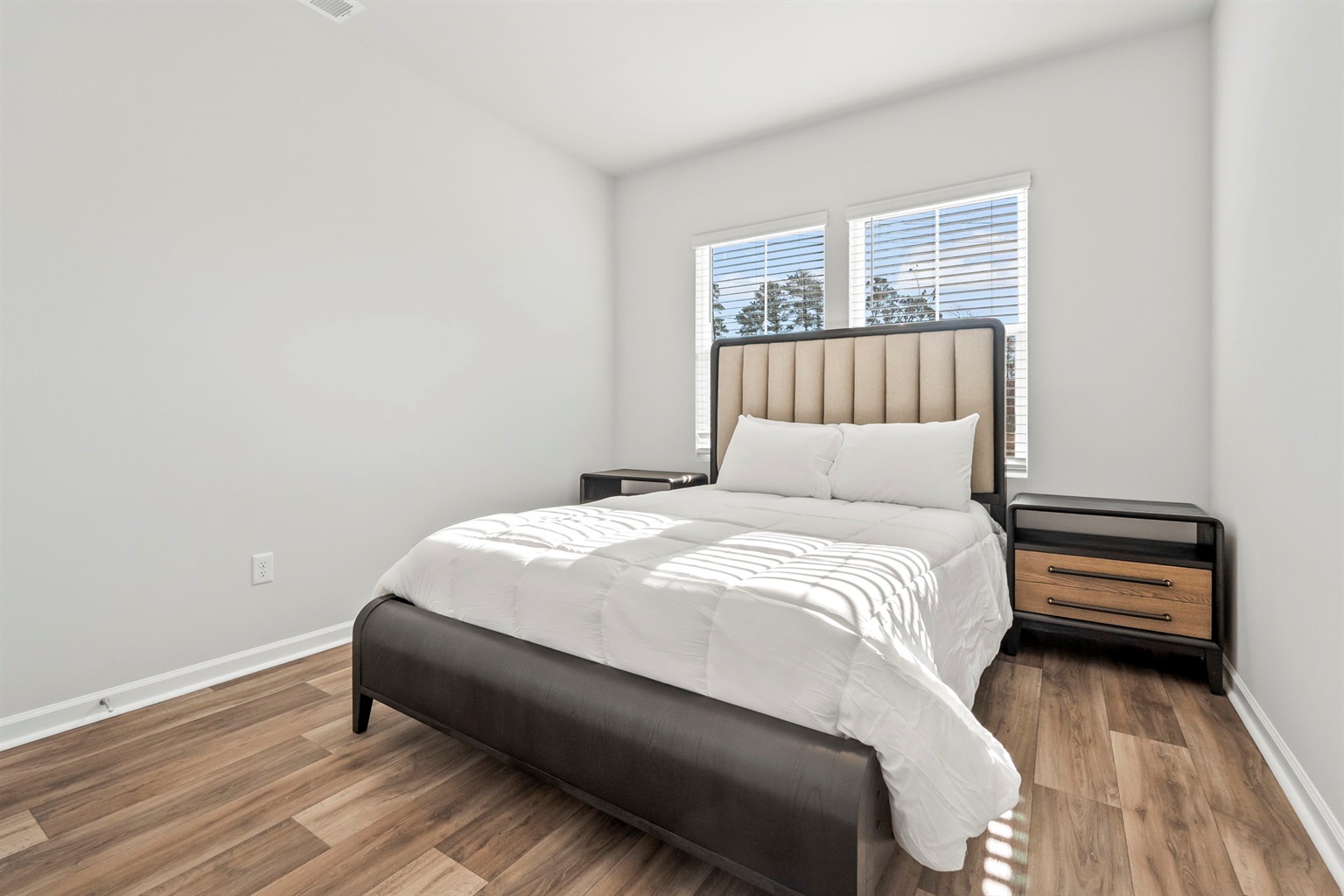 Enjoy morning coffee or family dinners on the charming back patio with a designer outdoor dining set. The fully equipped kitchen, brand-new designer furnishings, and Roku Smart TVs mean you're all set for a relaxing stay. Parking is easy with a 1-car garage and space for 2 more cars in the driveway.